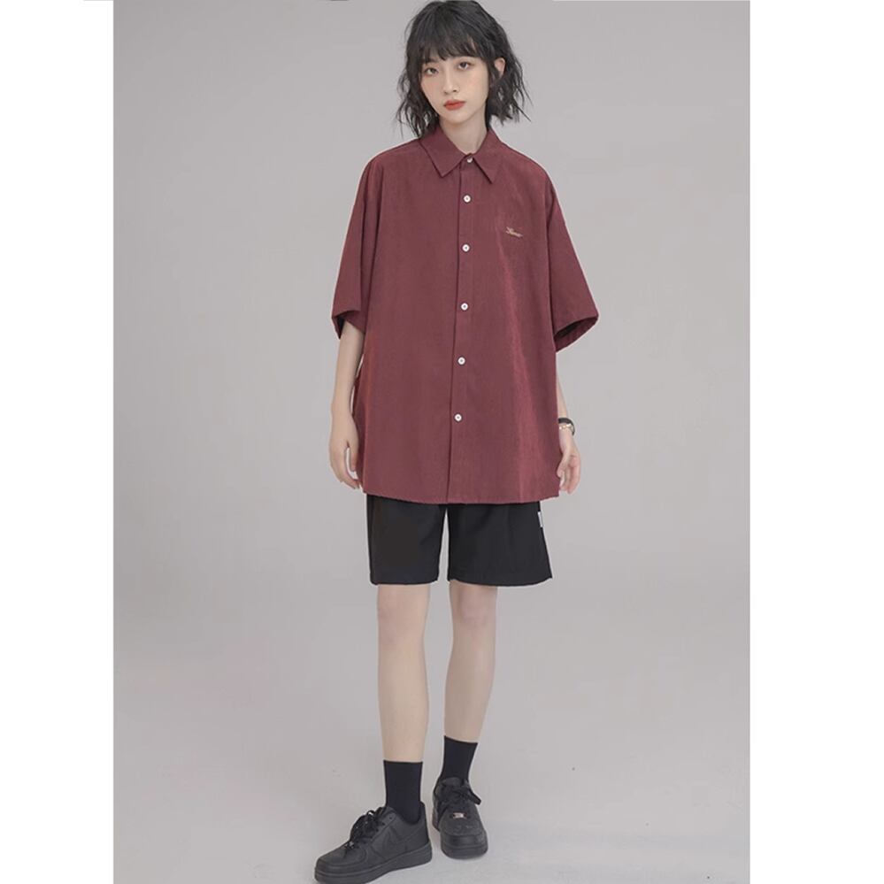 レディース シャツ 半袖 M L XL ブラック ホワイト ターメリック ワインレッド グリーン AS11108