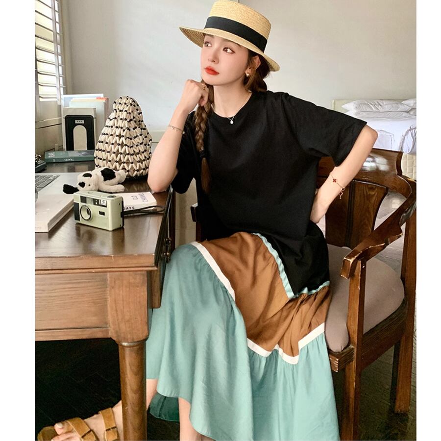 レディース 半袖ワンピース ロング丈 フレアスカート S M L XL レトロ AS11121