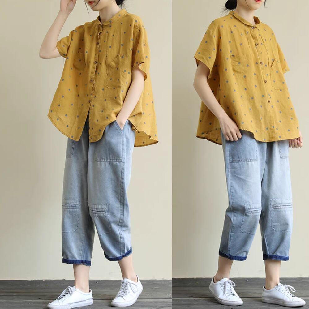 レディース 半袖 ドット柄 シャツ ブラウス S M L XL 2XL 3XL ホワイト レッド イエロー AS11144