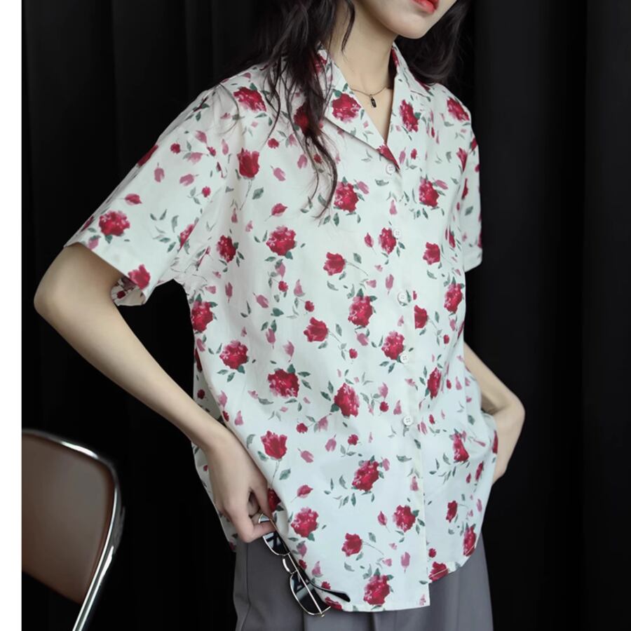 レディース 半袖 シャツ 花柄 ローズ柄 S M L レトロ AS11156