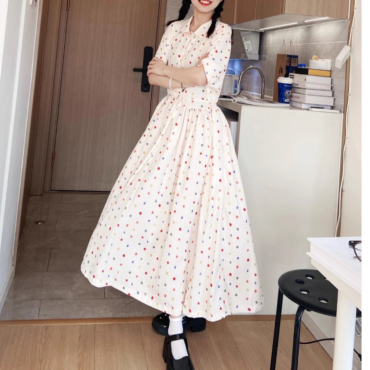 レディース ドット柄 半袖 ワンピース ロング丈 S M L XL オーバーシルエット カラフル AS11176