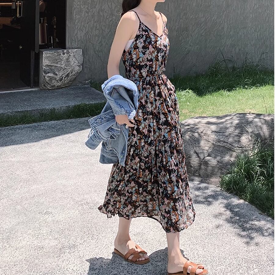 花柄が華やかなキャミソールワンピース。