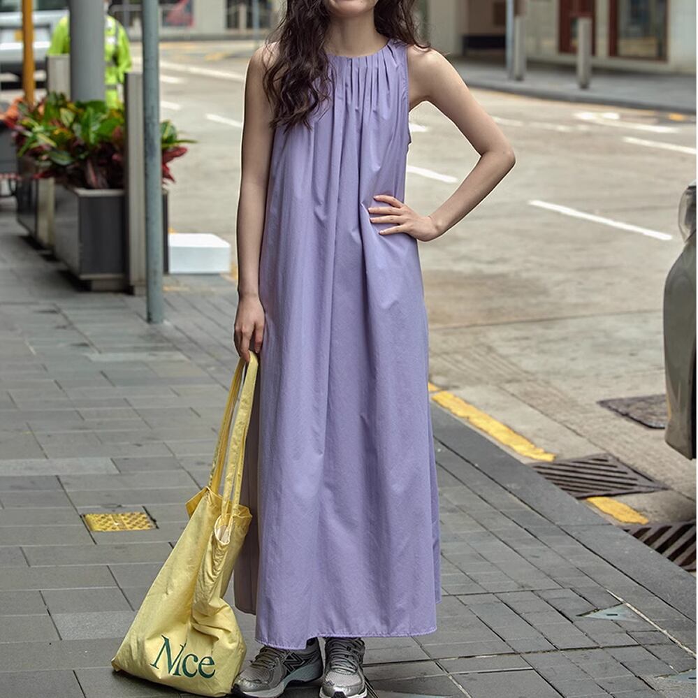 レディース ノースリーブワンピース ロング丈 S M パープル AS11222