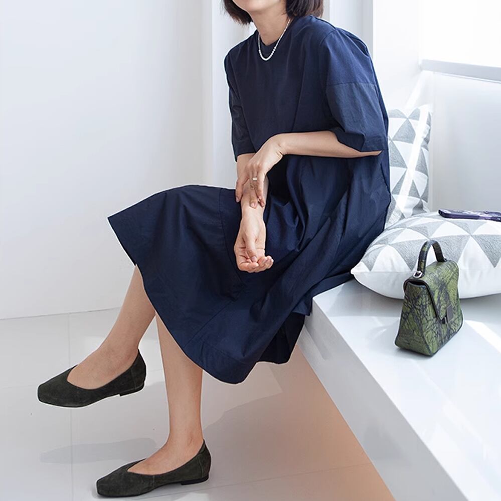 レディース シンプル ひざ丈 ワンピース 半袖 M L グレー ネイビー AS11244