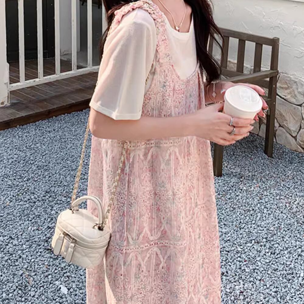 レディース ジャンパースカート ロング丈 ガーリー S M L ピンク AS11247
