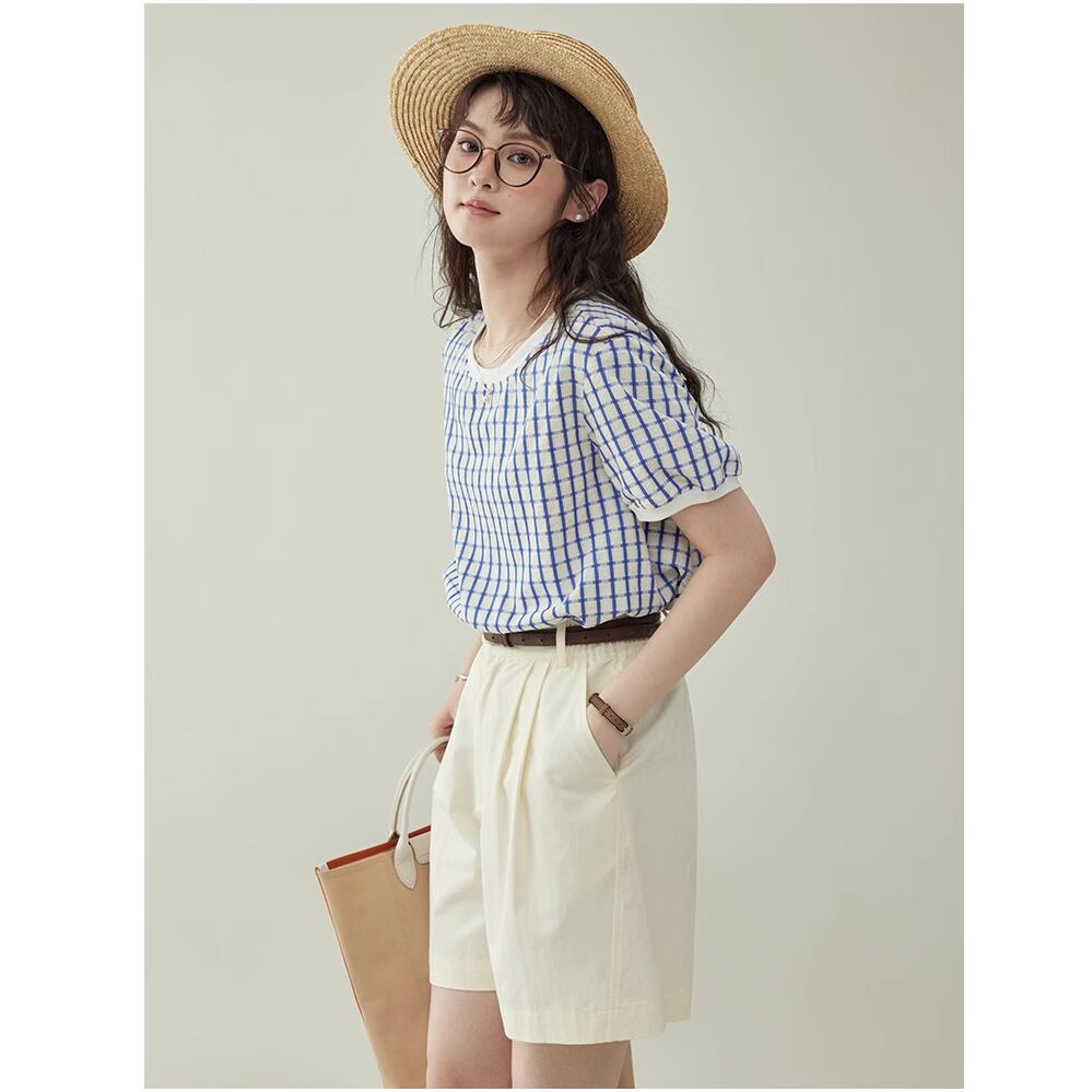 レディース チェック柄 半袖 トップス S M L ブルー AS11254