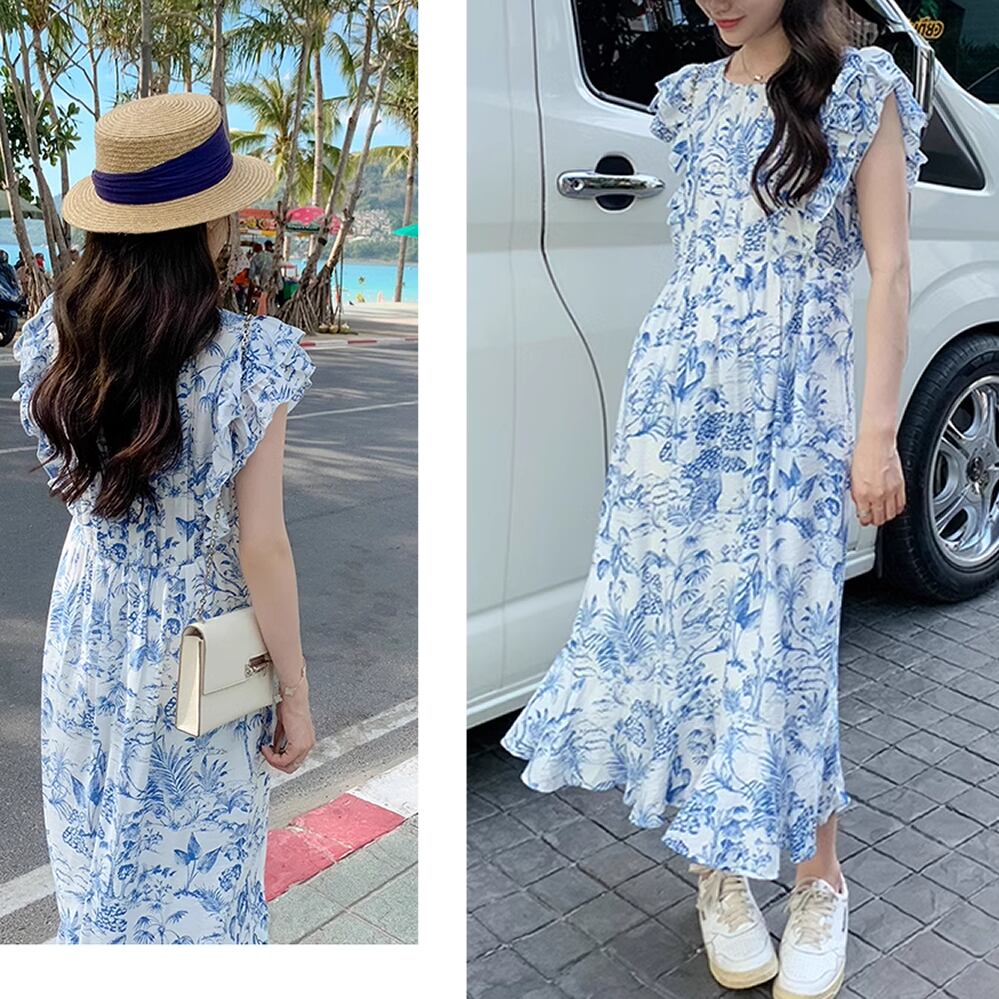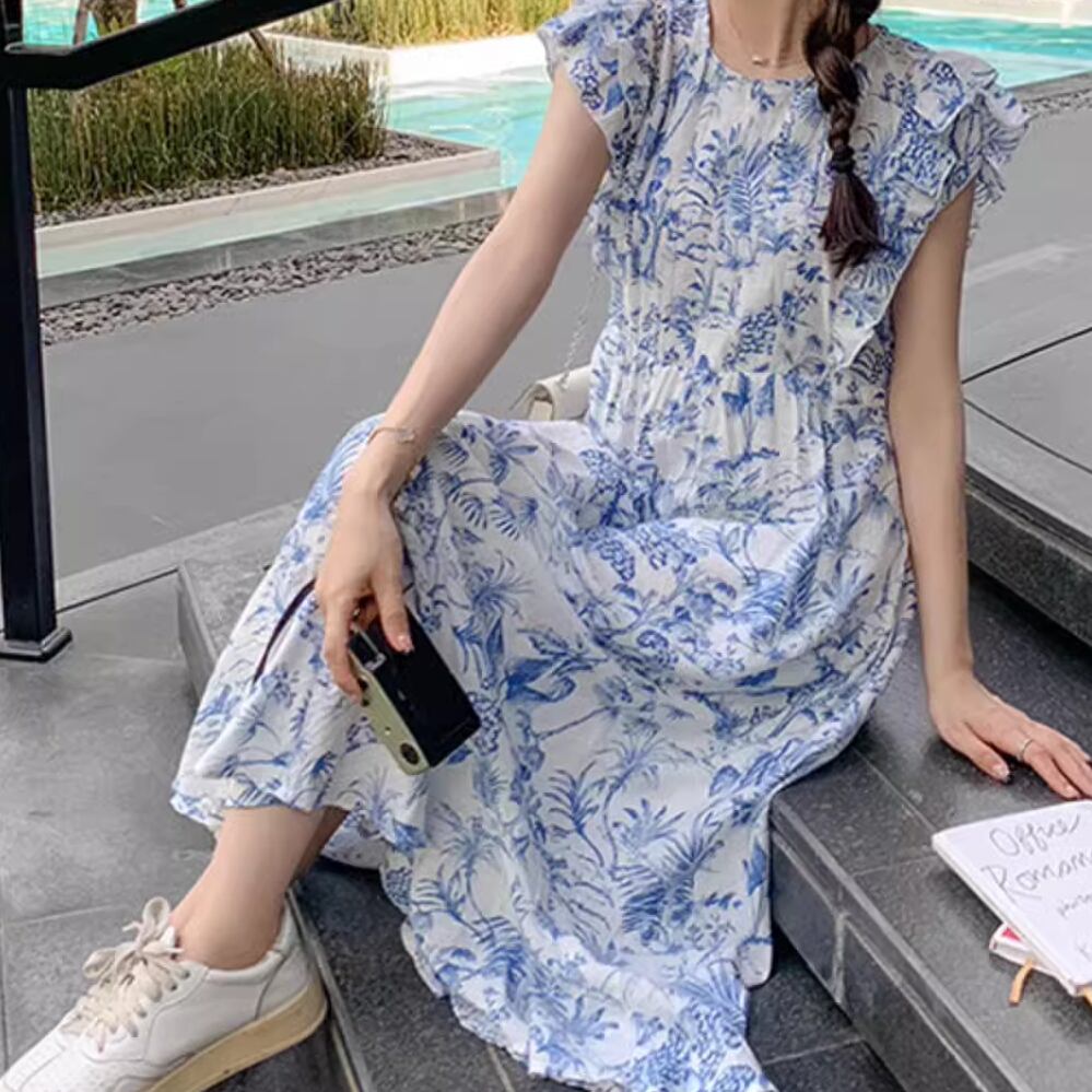 レディース 花柄 ワンピース 半袖 S M L XL ロング丈 フレアスリーブ AS11265