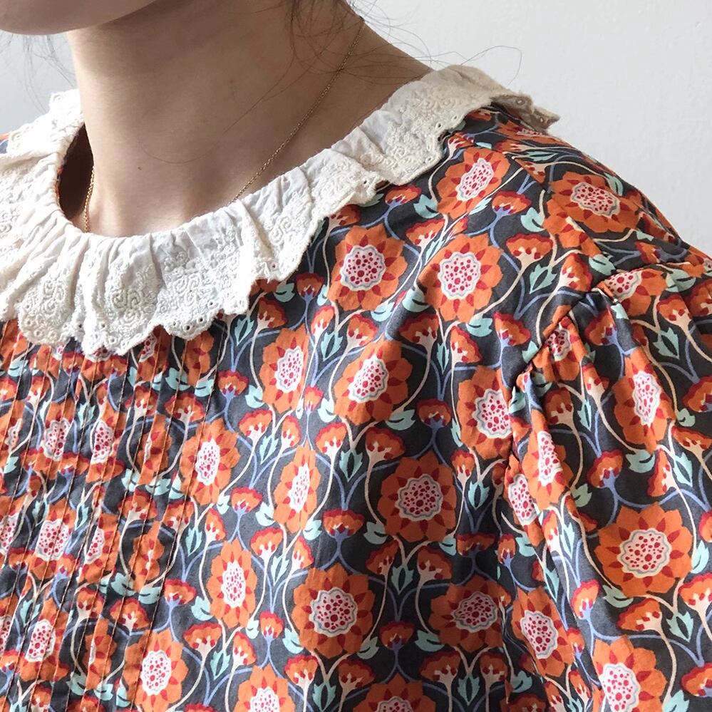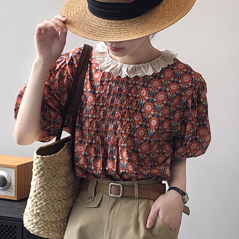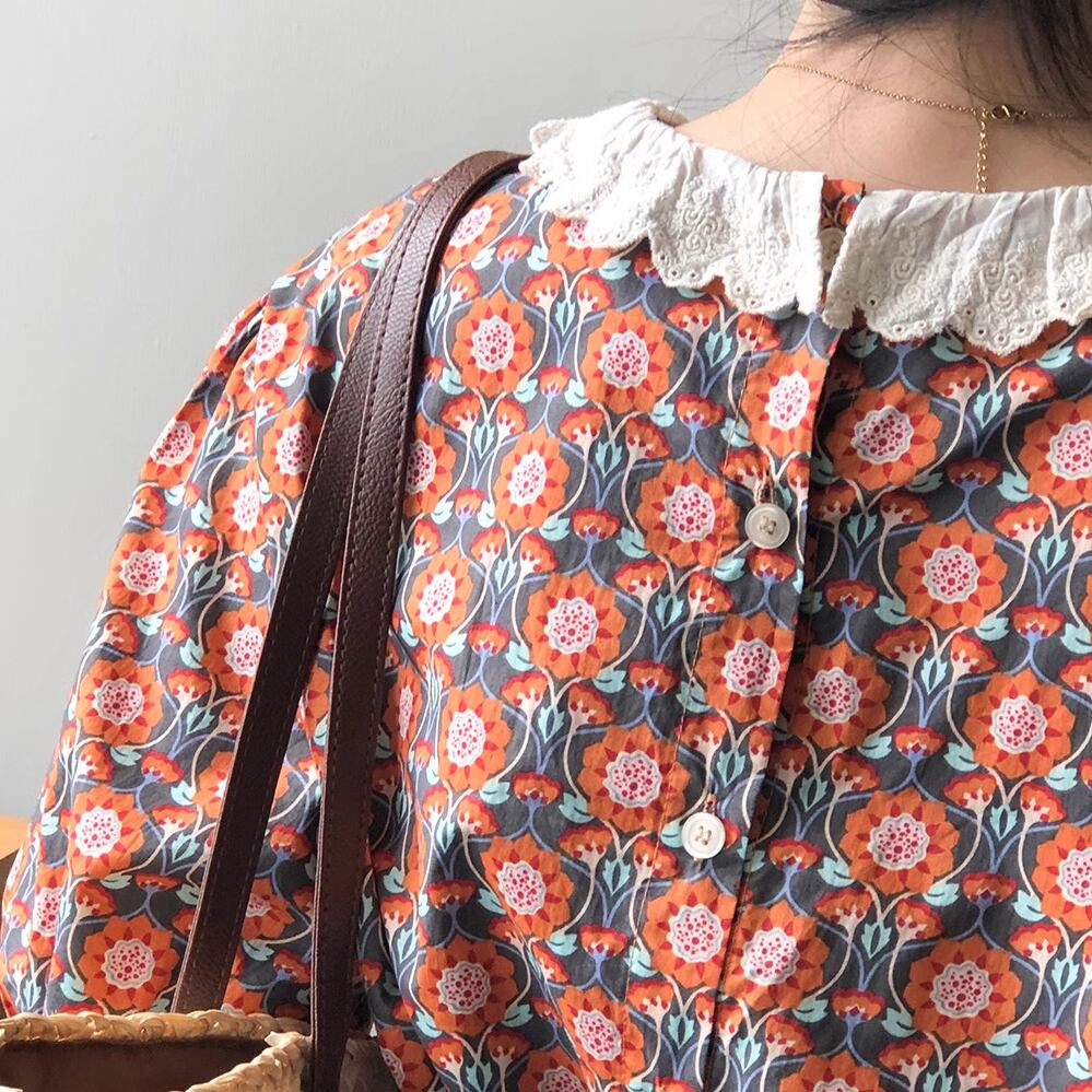 レトロな花柄が可愛いブラウス。
