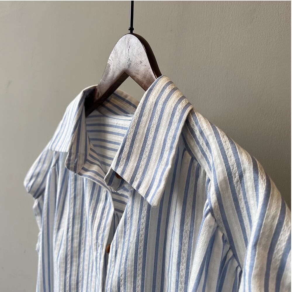 ナチュラルな風合いの爽やかなストライプ柄シャツ。