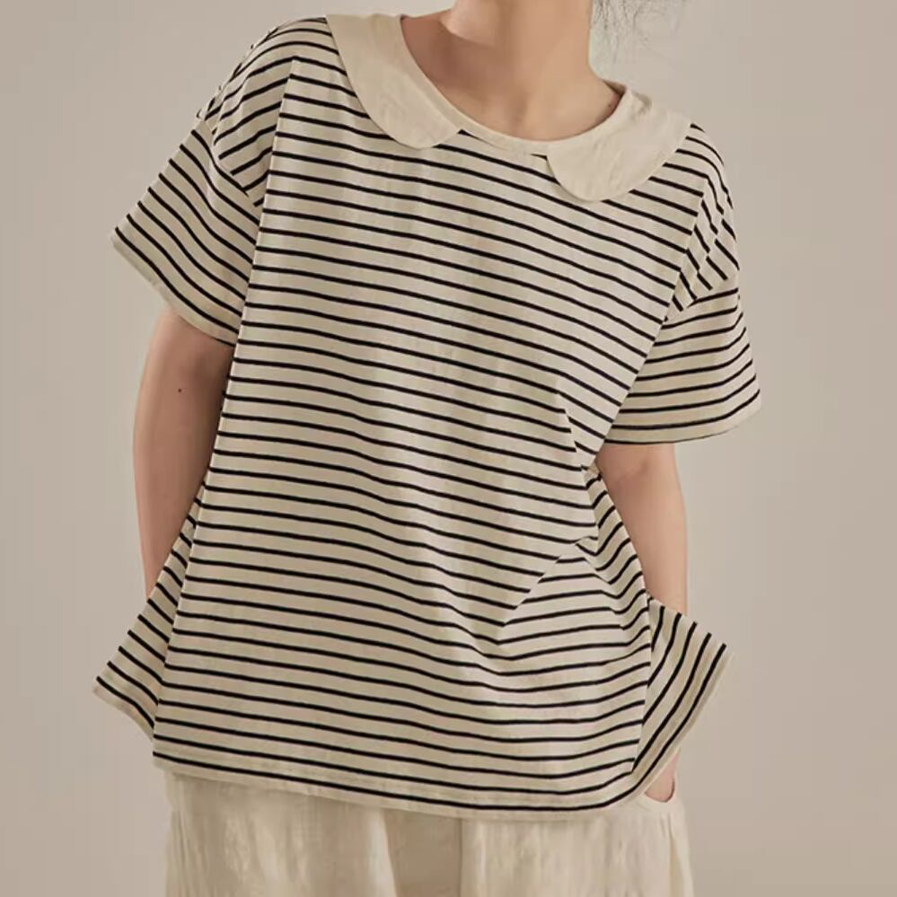 レディース ボーダー柄 半袖 トップス M L XL 2XL ブラック ブルー AS11275