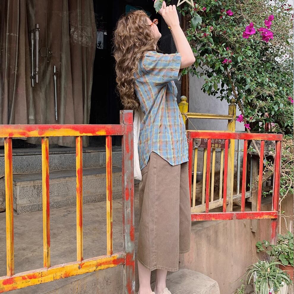 レディース チェック柄 半袖 トップス シャツ S M レトロ AS11288
