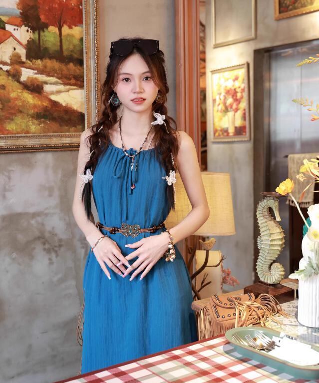 まるで異国のお祭りにやってきたかのような気分にさせてくれる、ベルト付きのセットアイテム。派手すぎず、でも地味過ぎない絶妙なバランスが、あなたのスタイルに新たな魅力を加えること間違いなし。自分だけのボヘミアンスタイルを完成させるために、このセットを是非お試しください。