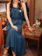 レディース サスペンダーロングスカート Aライン ノースリーブ ワンピース スカート ボヘミアン レトロ エスニックスタイル ベルト付き 2点セット KS10387