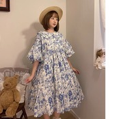 レディース 半端袖 花柄 ロリータ ワンピース レトロ ブルー グリーン AS11319