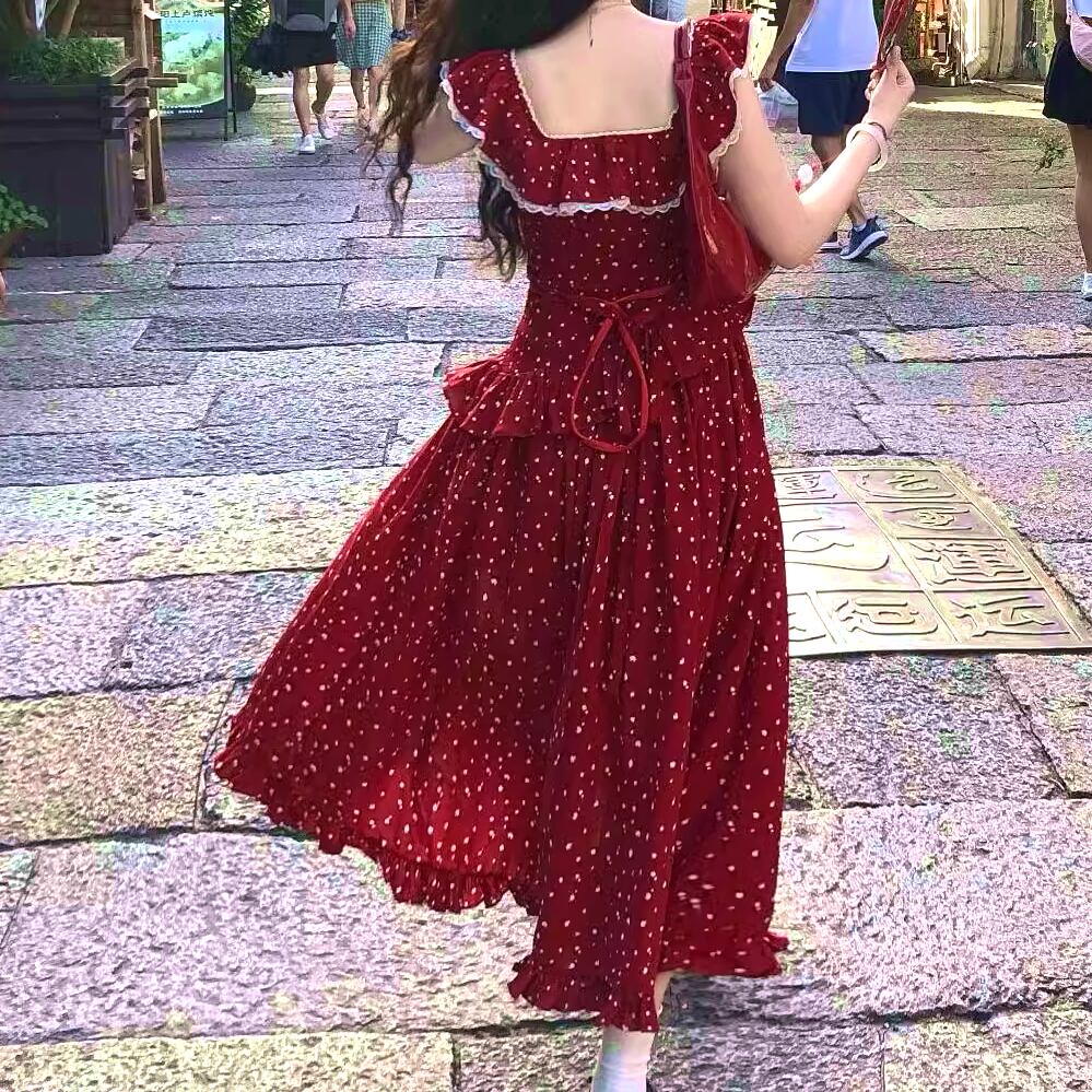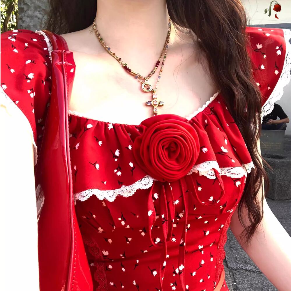 レディース ノースリーブワンピース 花柄 フリル S M L 赤 レッド AS11336