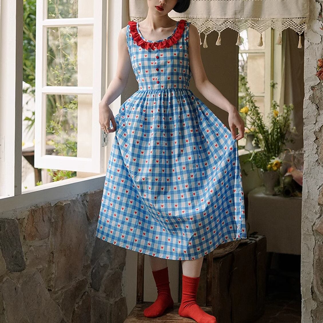 レディース ノースリーブ ロングワンピース S M レトロガーリー フリル AS11347