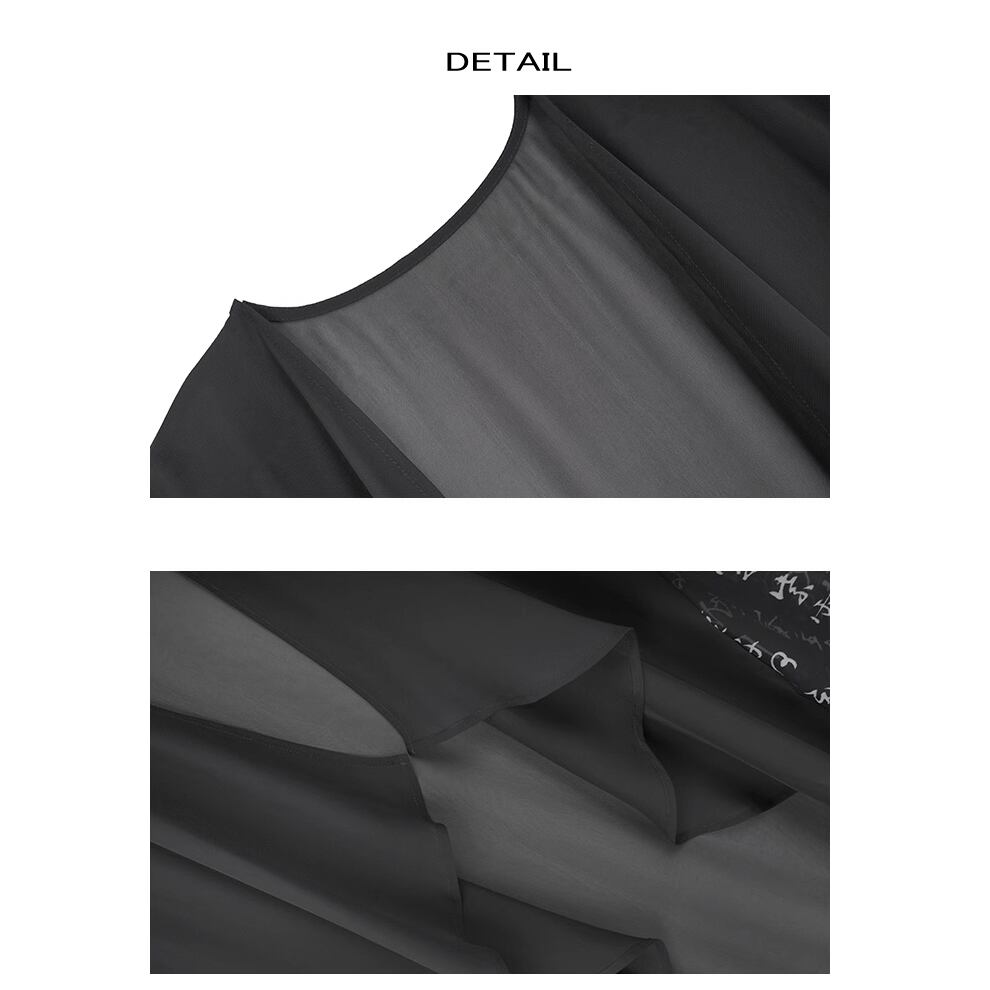 レディース 半端袖 漢字デザイン トップス 中国風 薄手 透け感 カーディガン ブラック AS11383