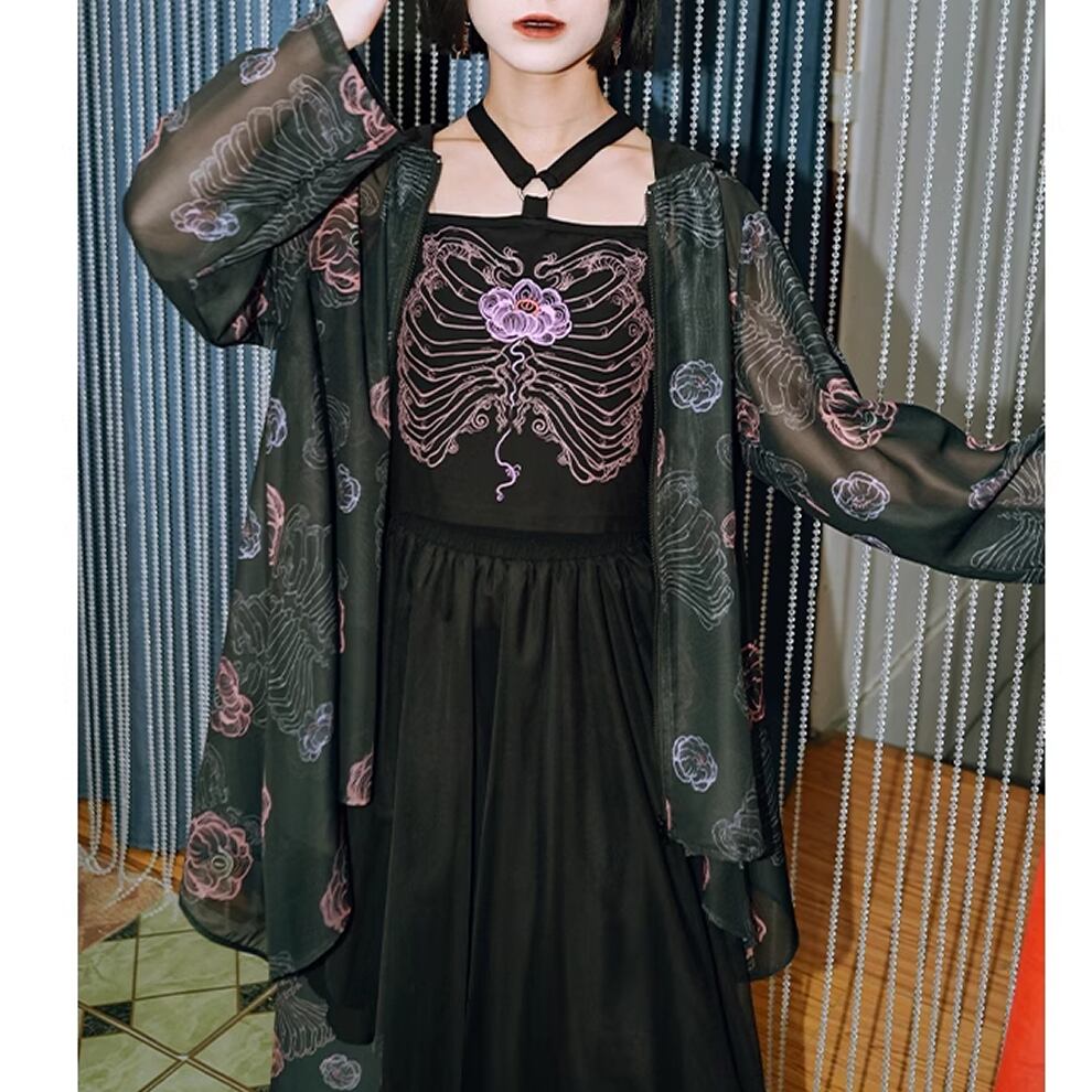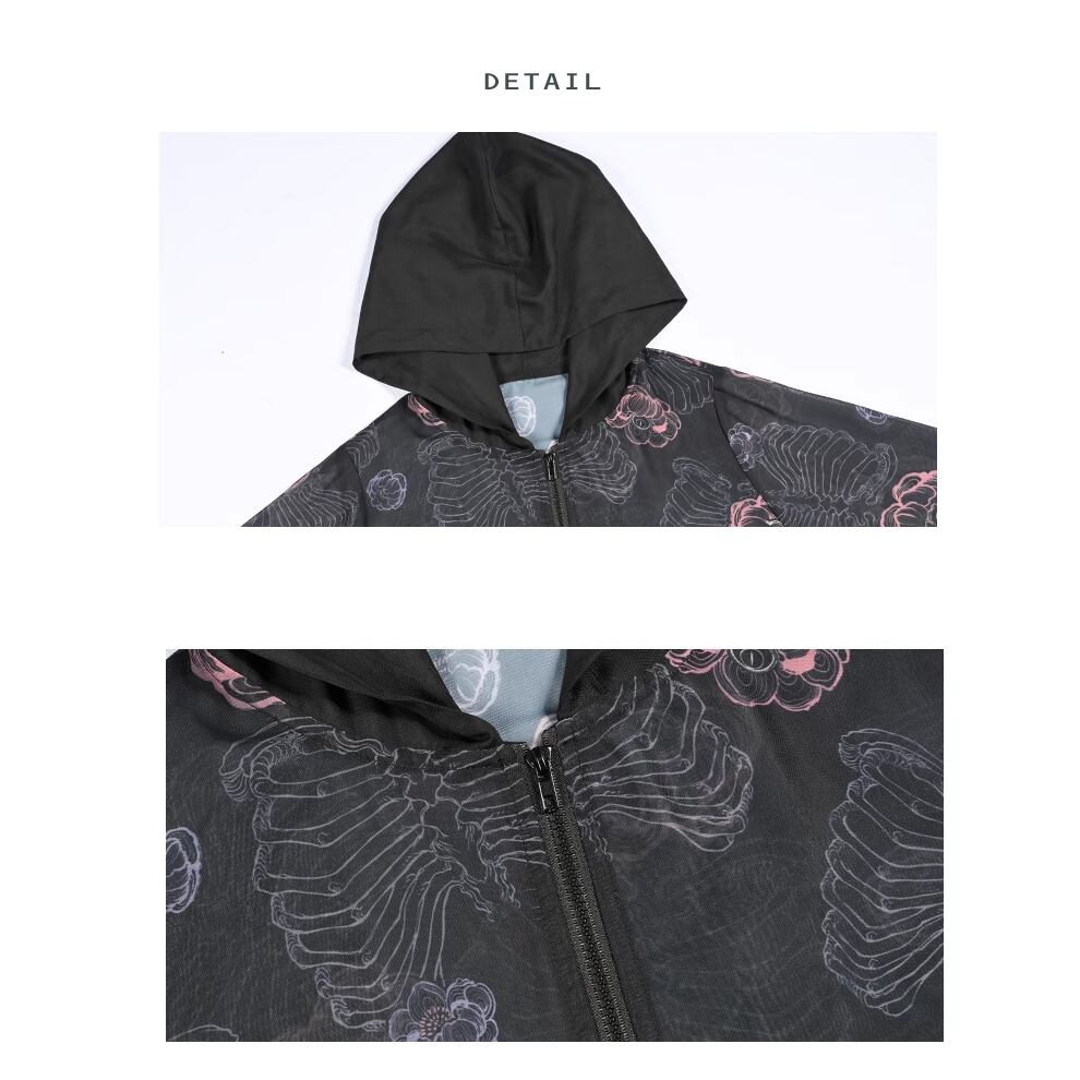 レディース 花柄 シアー カーディガン フード付き フロントジッパー 長袖 S M L レトロ AS11387