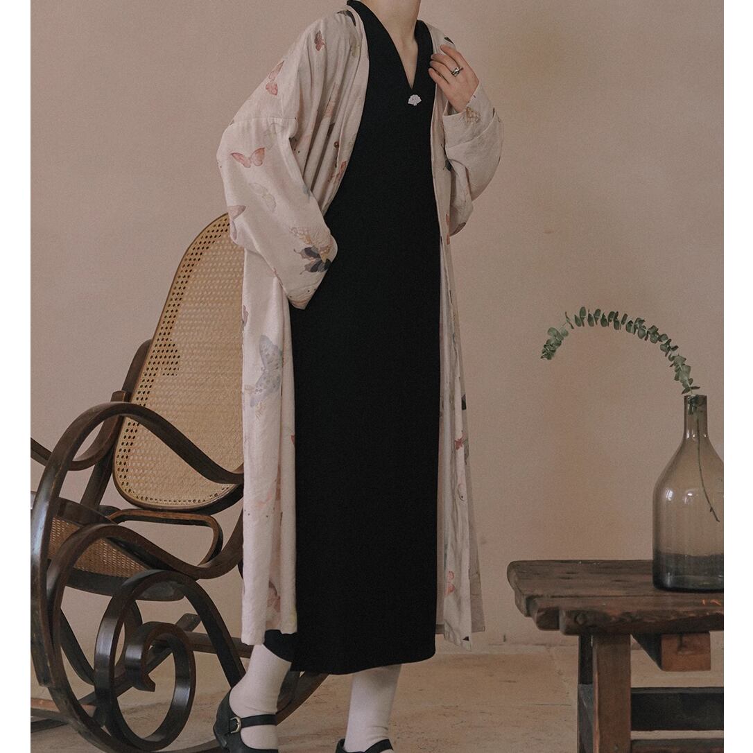 レディース バタフライ柄 トップス シャツ ロング丈 長袖 カーディガン S M レトロ AS11397