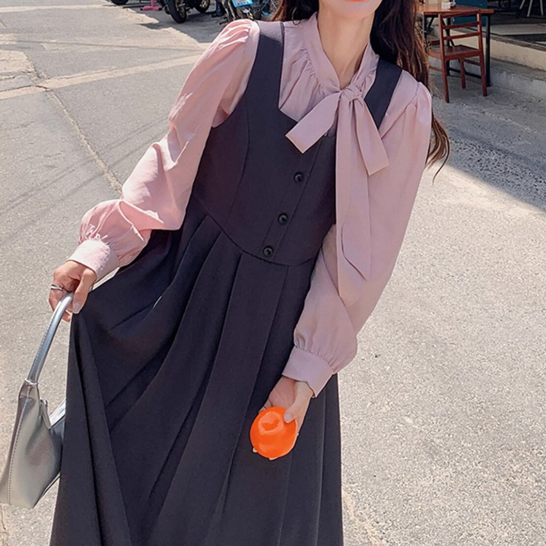 長袖ブラウス+ノースリーブワンピースの2点セット。