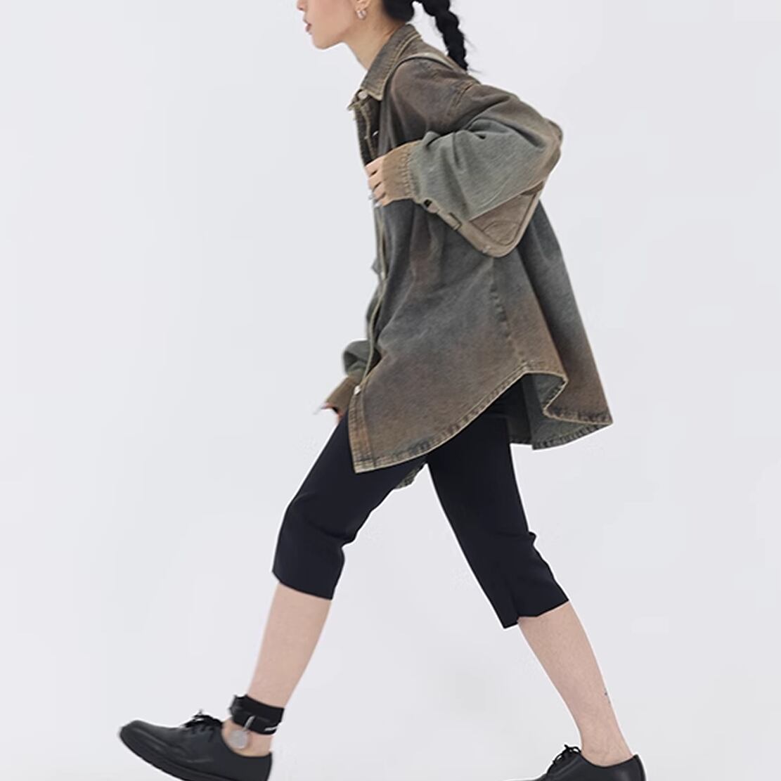 レディース 長袖 デニム シャツ S M グラデーション AS11476
