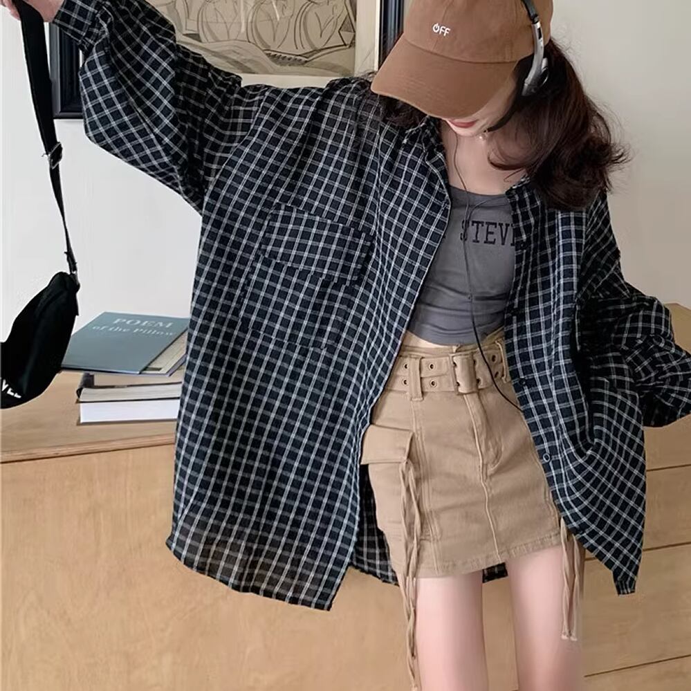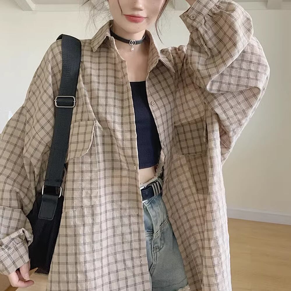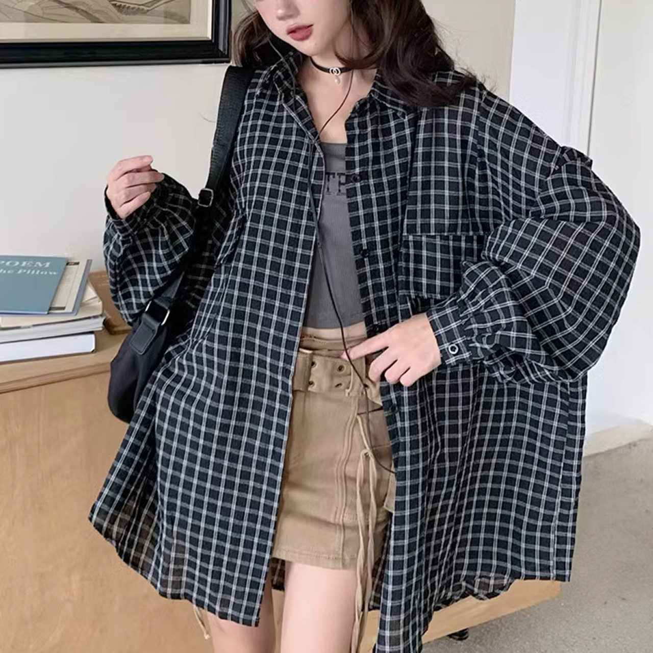 レディース チェック柄 オーバーシルエット ロング丈 長袖 シャツ S M L XL 2XL 3XL 4XL 大きいサイズ AS11487
