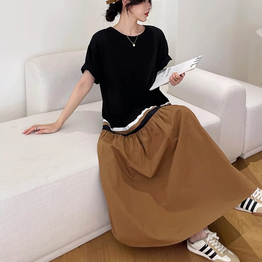 レディース 半袖 ロングワンピース バイカラー L XL 2XL 3XL 大きいサイズ AS11492