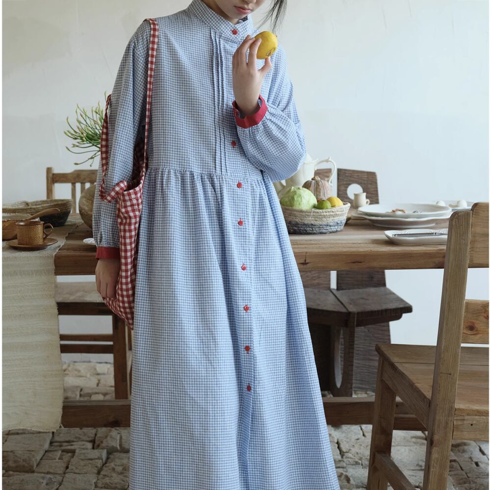 レディース 長袖 シャツワンピース チェック柄 ブルー AS11497