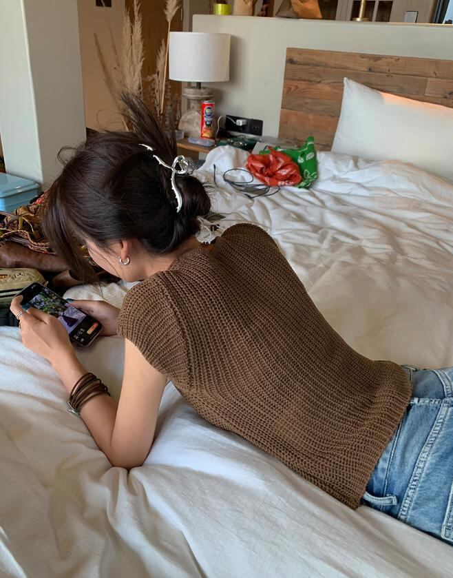 シンプルで飽きのこないデザインに、機能的な編み地が魅力のショートスリーブニットトップス。
