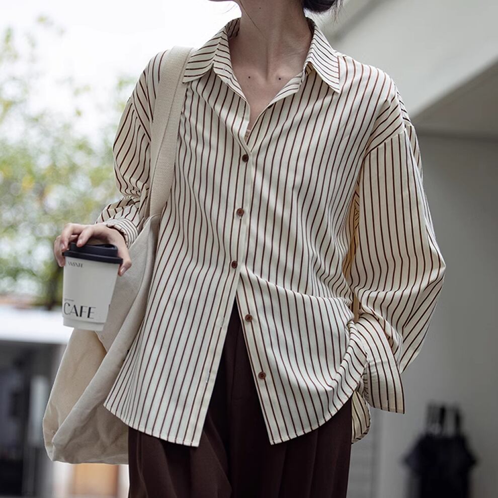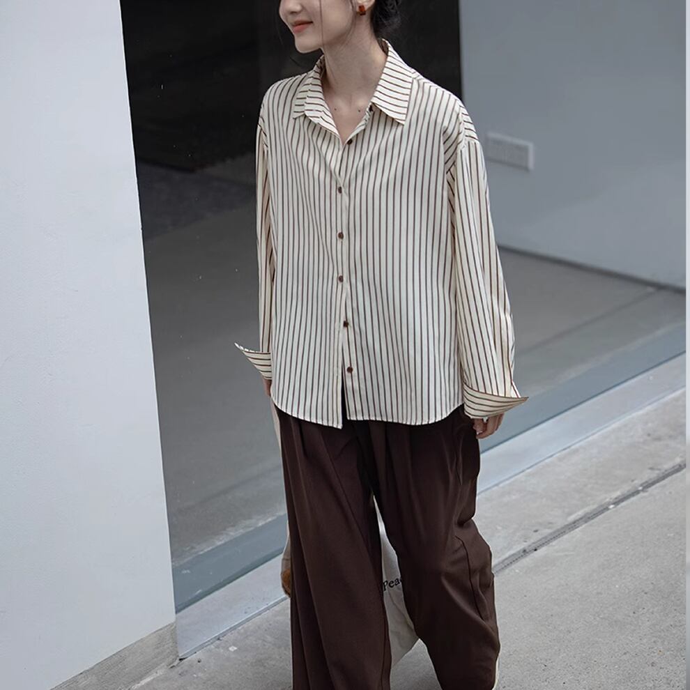 レディース ストライプ柄 長袖 シャツ ブラウン AS11540