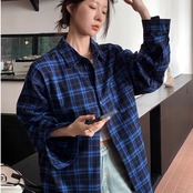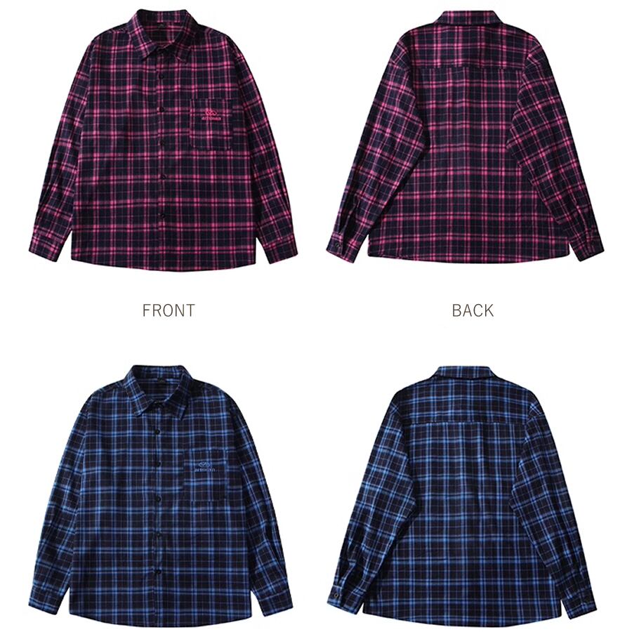 レディース チェック柄 長袖 シャツ M L XL 2XL パープル ブルー AS11545