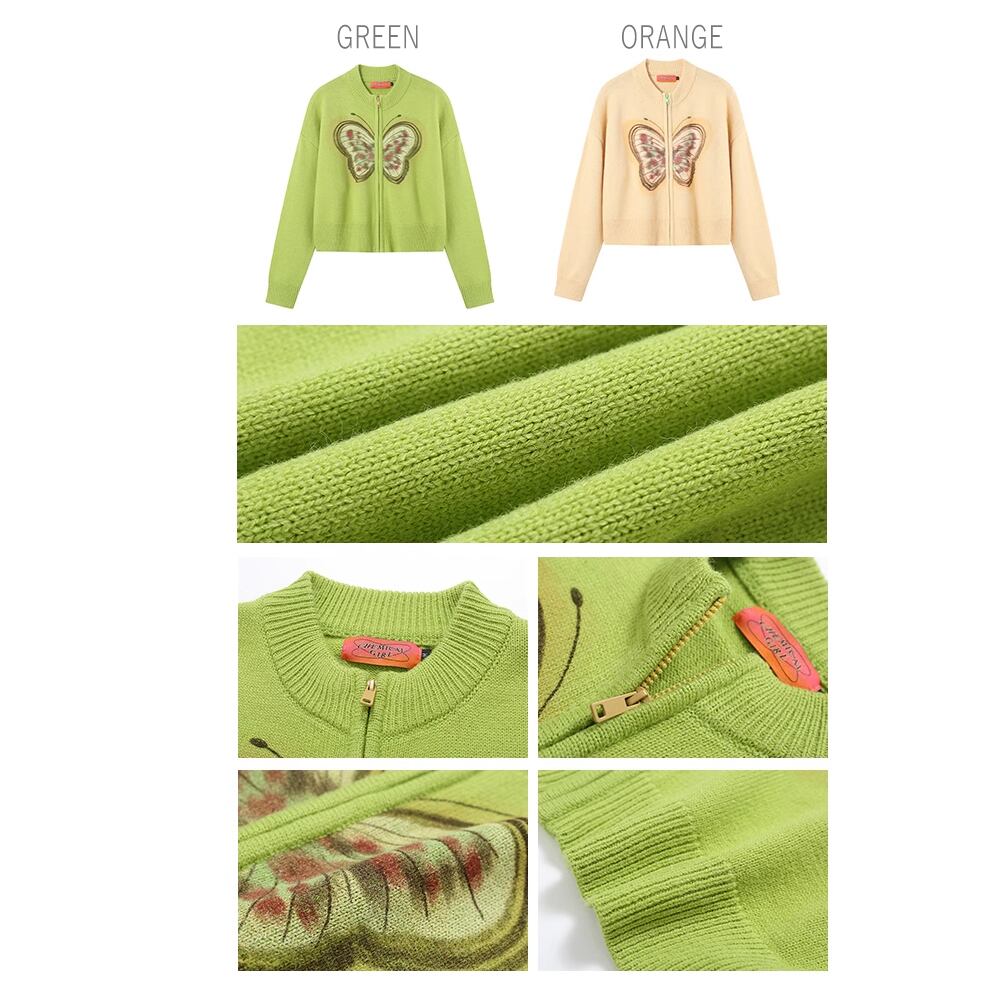 レディース ニット カーディガン ショート丈 バタフライ S M L グリーン オレンジ AS11563