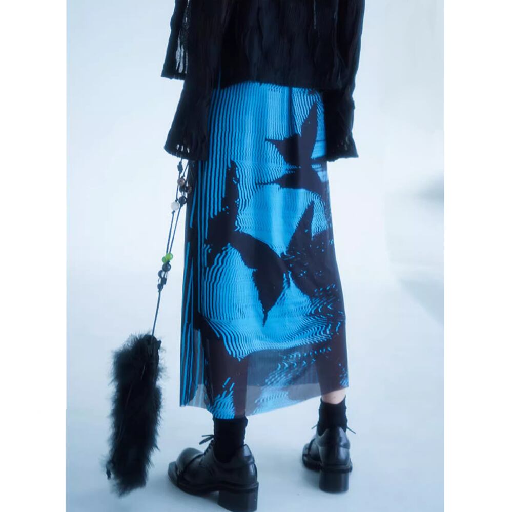 レディース バタフライ柄 蝶柄 ロングスカート S M L ブルー AS11571