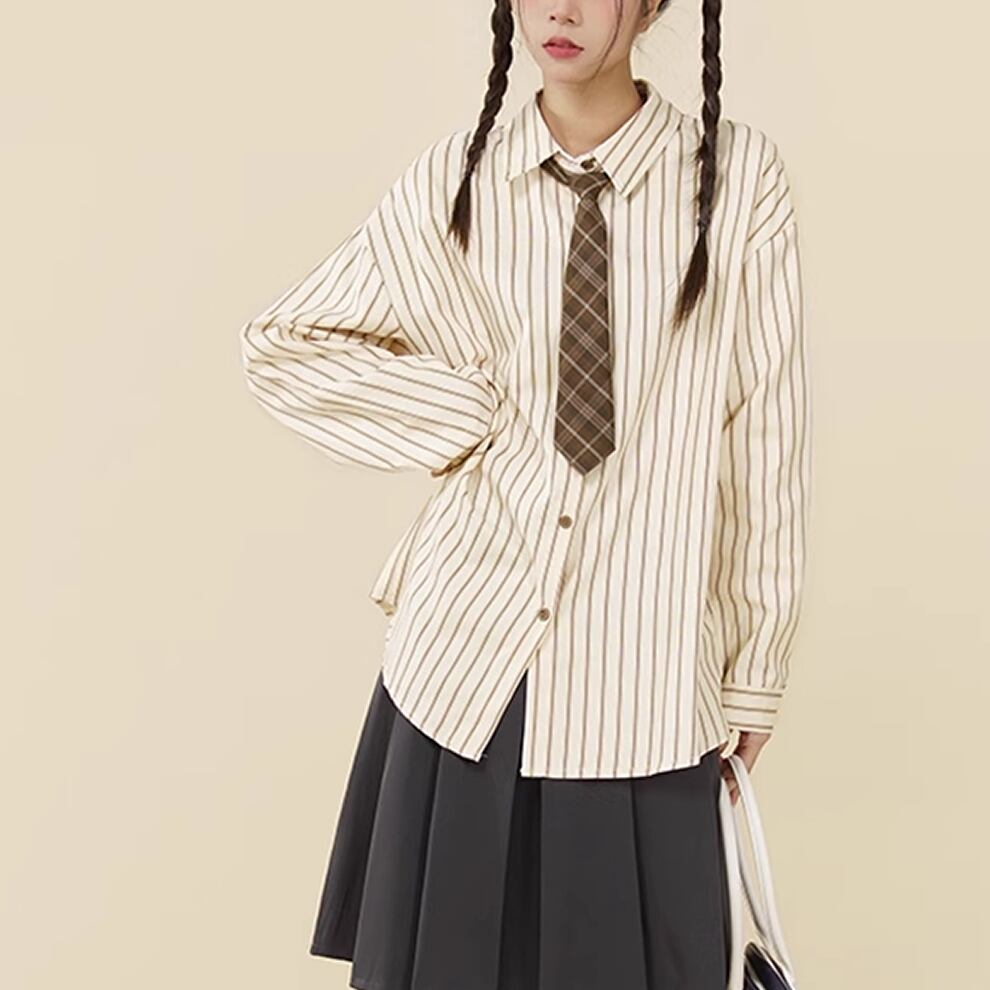 ストライプ柄長袖シャツ。ネクタイ付き。
