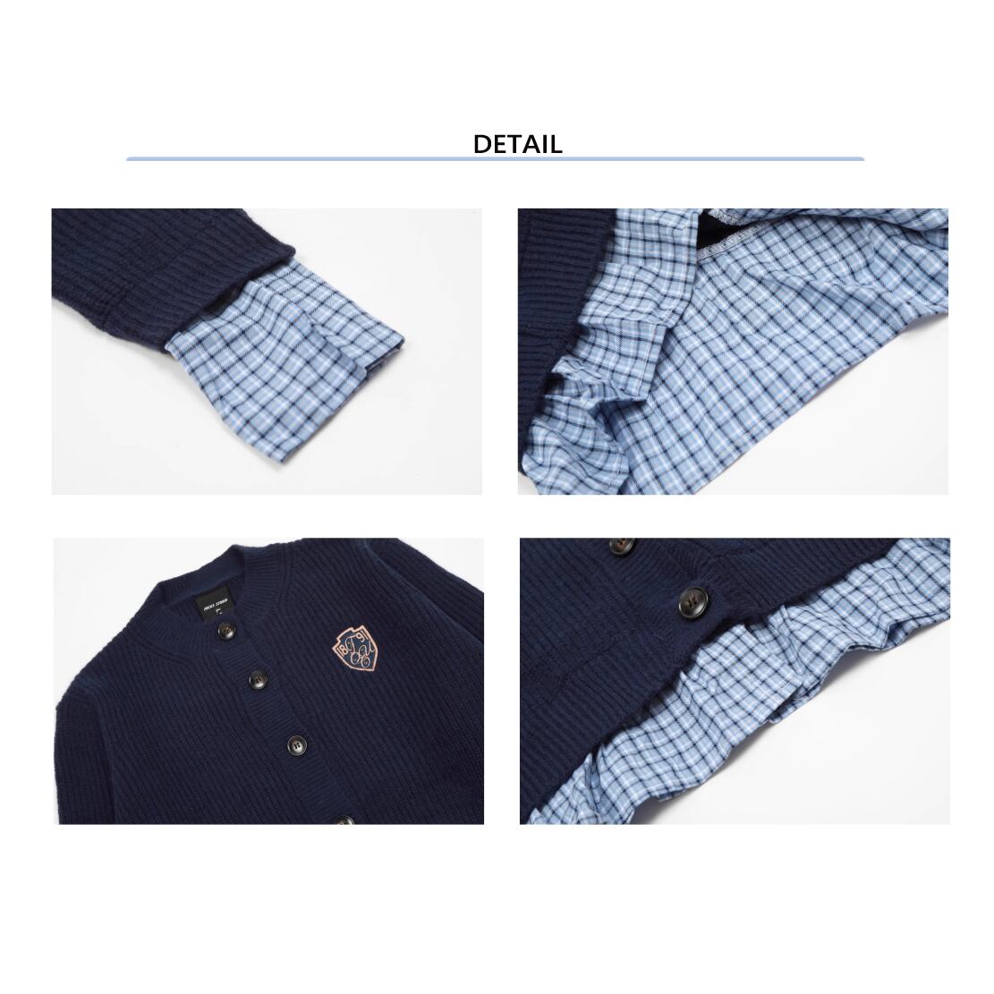 袖、裾のチェック柄が可愛いカーディガン。