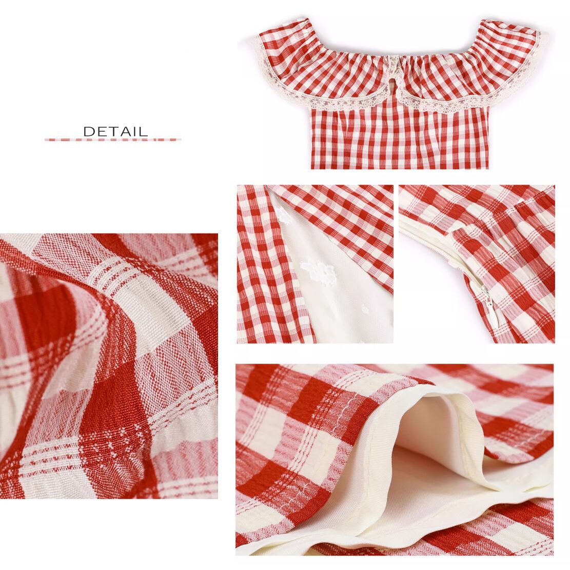 レディース チェック柄 ロングワンピース レース ノースリーブ レッド レトロ AS11665