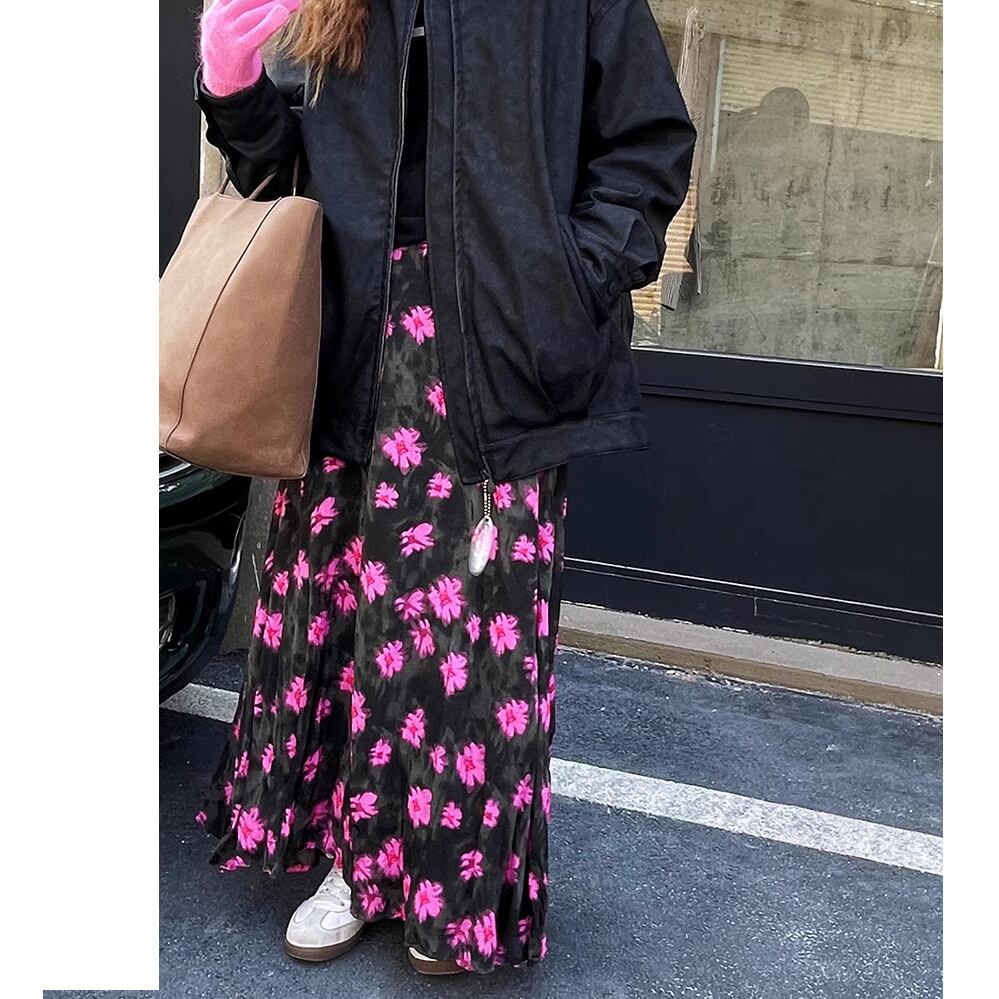 花柄の華やかなロングスカート。