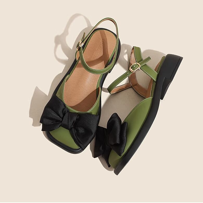レディース サンダル リボン 厚底 レザーグリーン AS11802