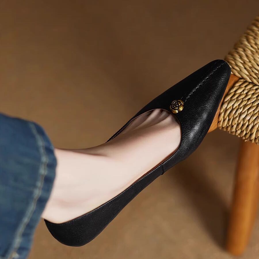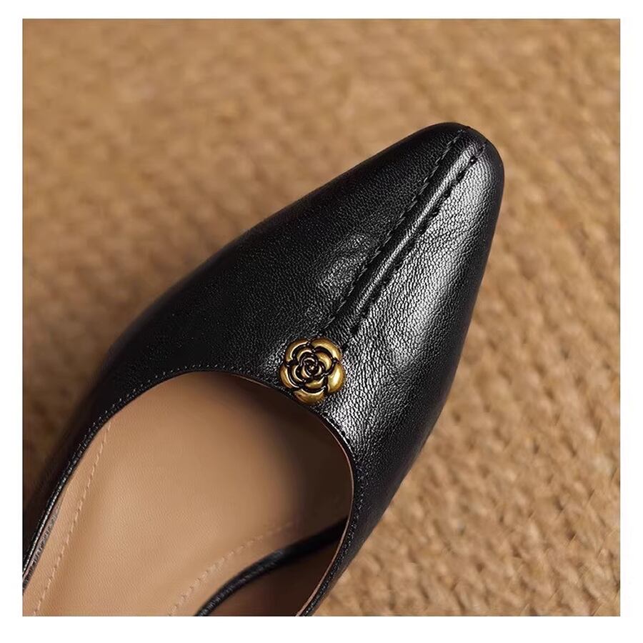 レディース パンプス レザー 薔薇 レトロ ブラック ブラウン AS11817